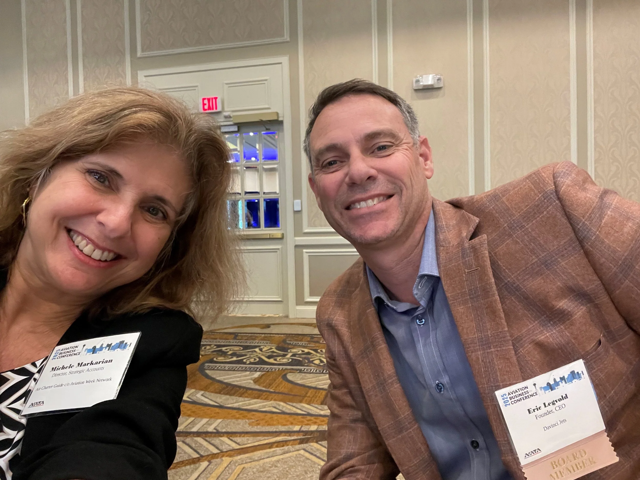 Eric Legvold, CEO of Davinci Jets networking with Michele Markarian, Director, Strategic Accounts Aviation Week Network at the Aviation Business Conference in Dallas, TX.